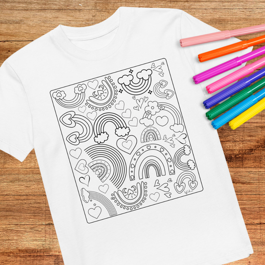 Rainbow Doodles Color-in tee: Organic cotton kids t-shirt