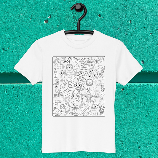 Happy Doodles Color-in Tee: Organic cotton kids t-shirt